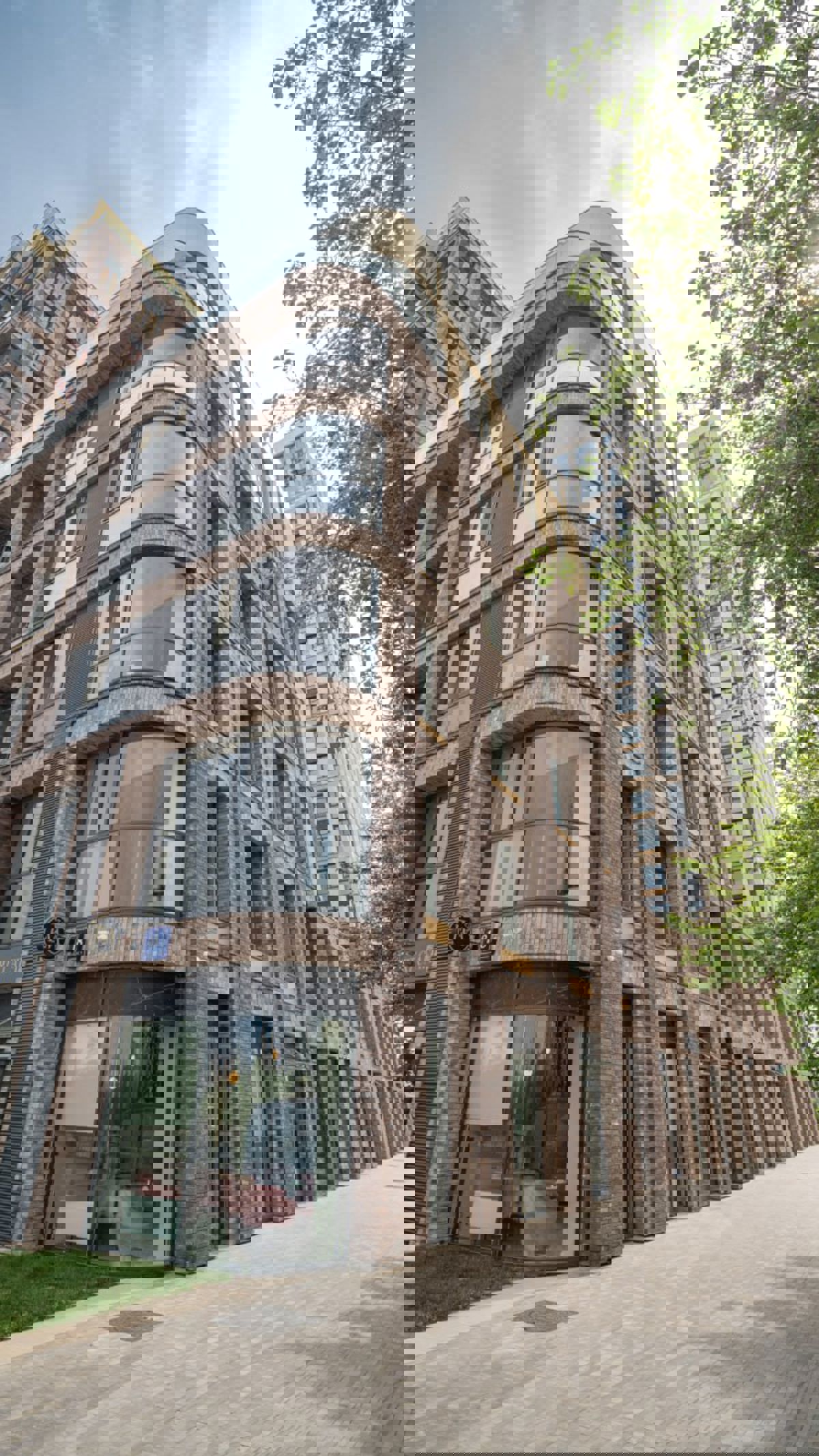 Здесь также используются радиусные элементы, чтобы внести разнообразие в прямолинейные во всех смыслах формы зданий, придать объём объектам и сделать фасад более гармоничным.