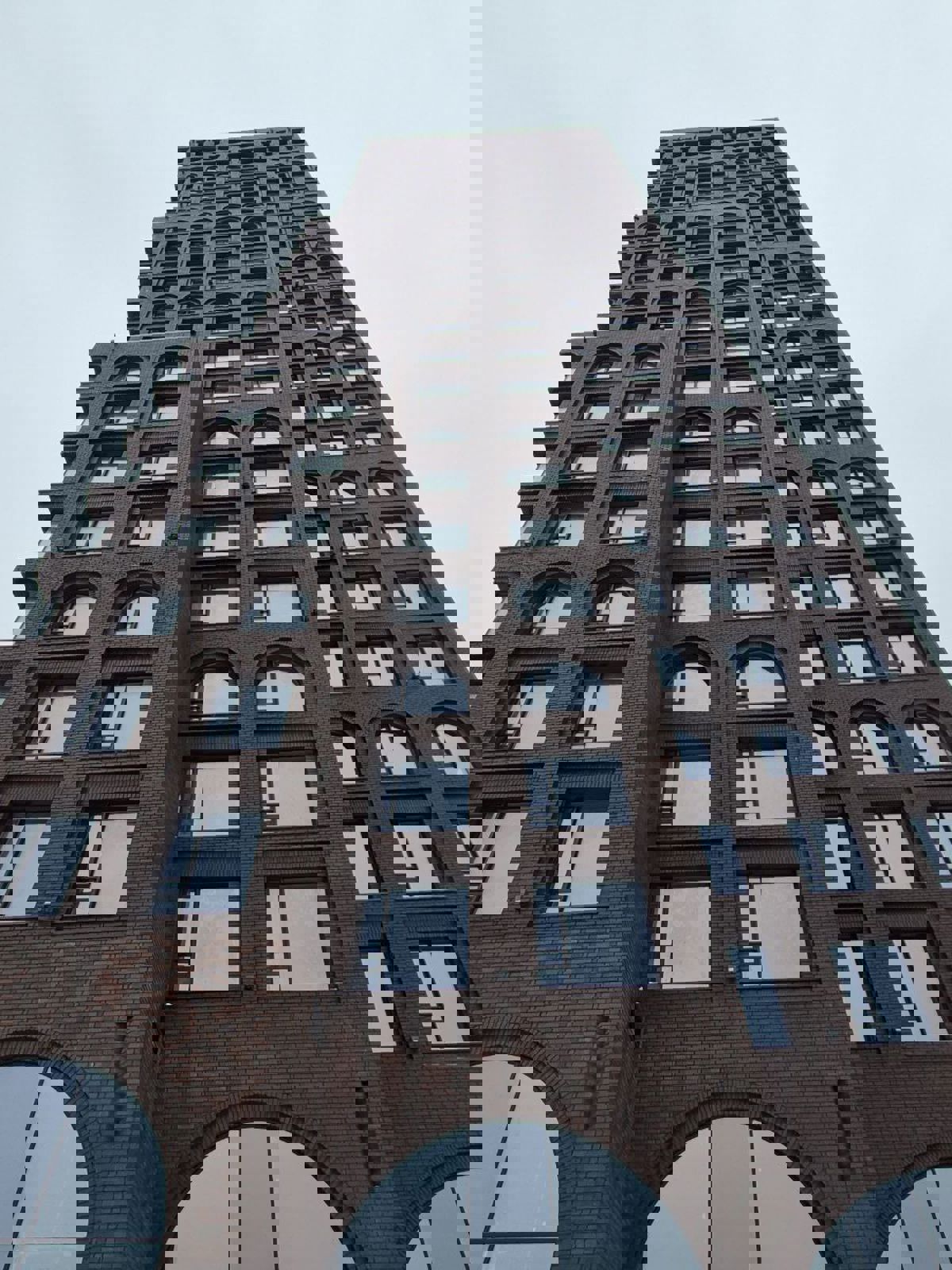 Архитектура объекта — сложная, многоуровневая, с арочными окнами, перспективными обрамлениями и элементами из композитных панелей на верхних этажах. Вся эта сложность была успешно реализована на нашей подсистеме.