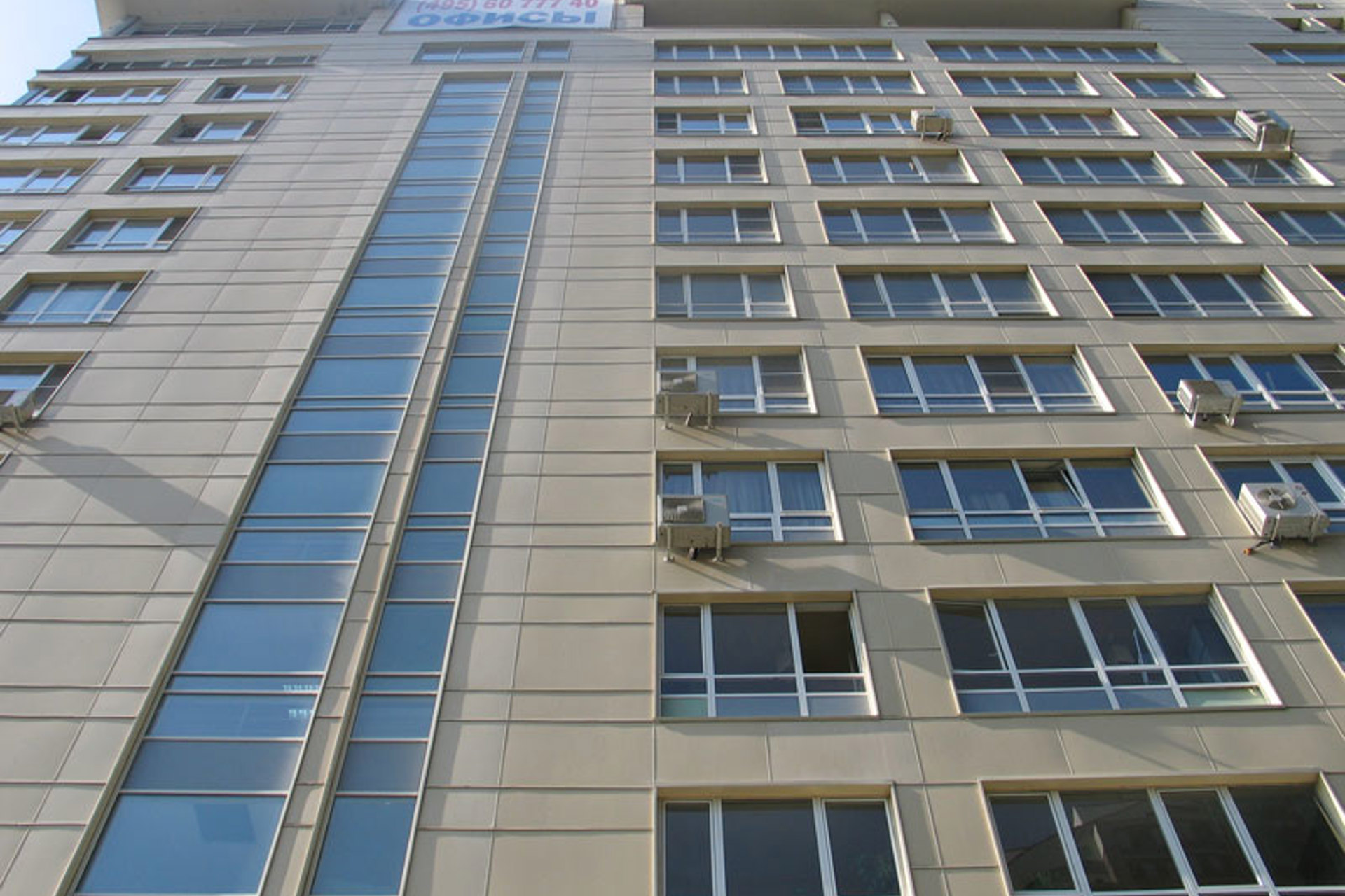 Облицовочный материал: фиброцемент, керамогранит (видимое крепление)