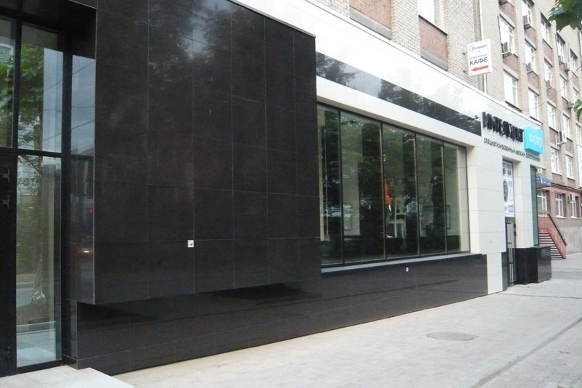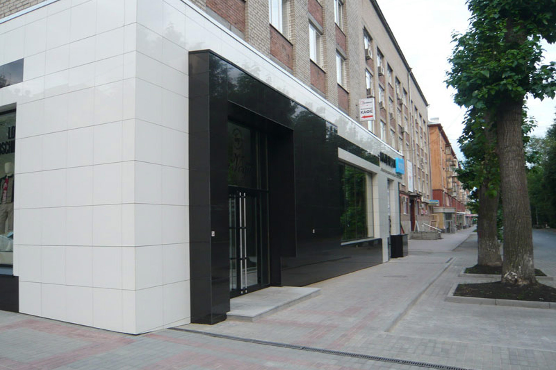 Облицовочный материал: керамогранит (скрытое крепление)