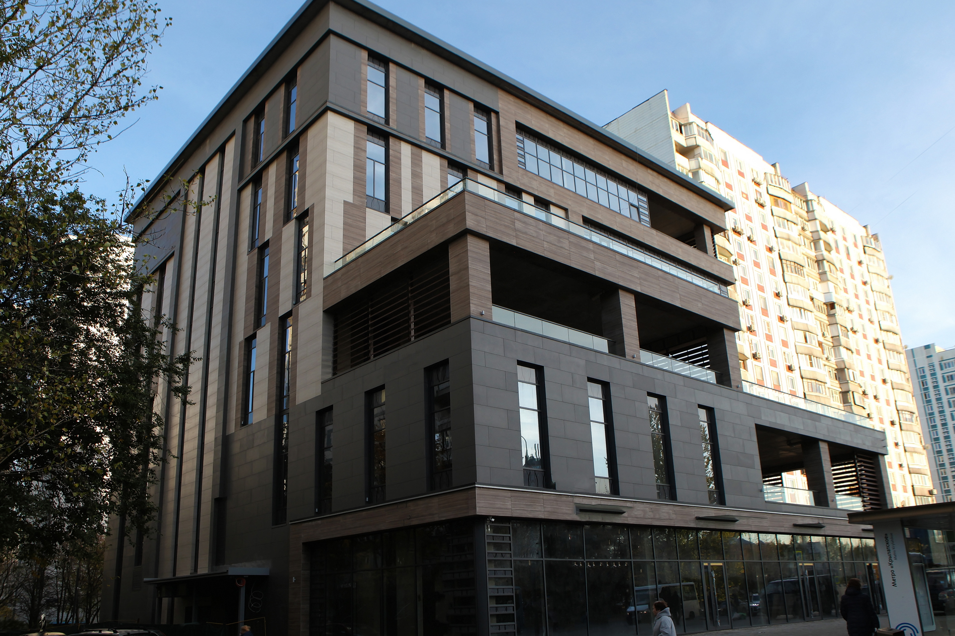 Облицовочный материал: керамогранит (скрытое крепление)
