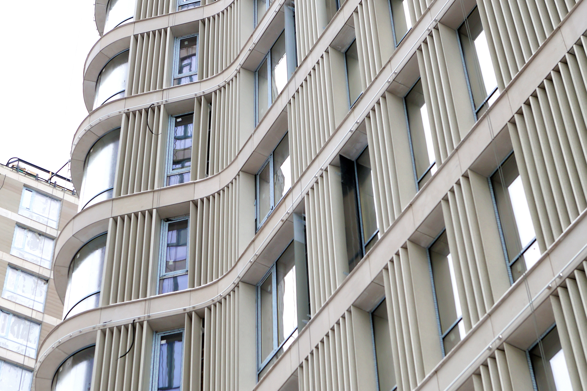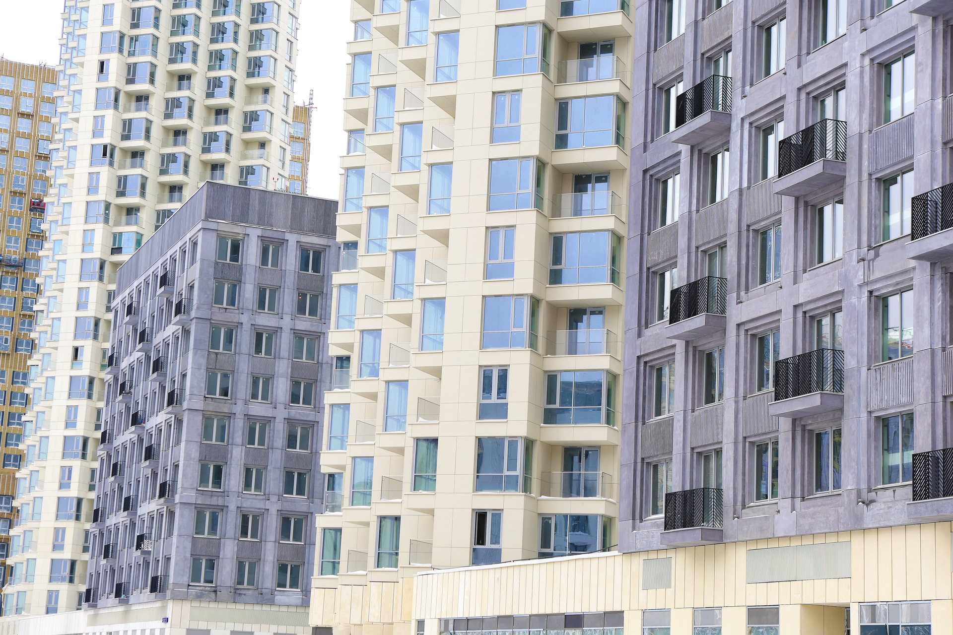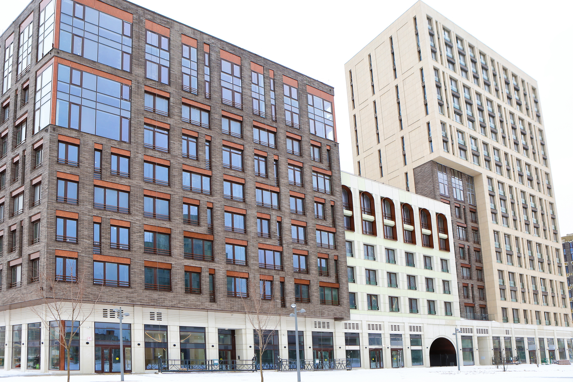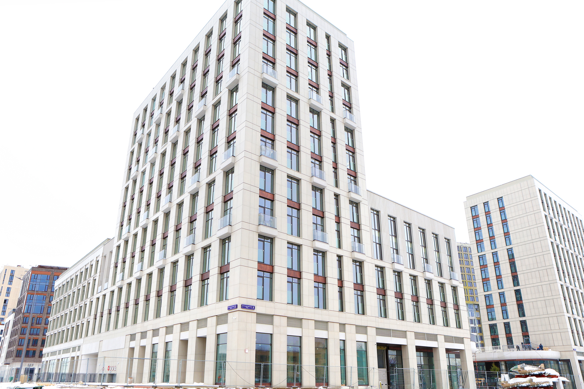 Облицовочный материал: кассеты из алюмокомпозита, крупноформатный керамогранит (скрытое крепление), бетонная плитка с затиркой, стеклофибробетон, полимербетон