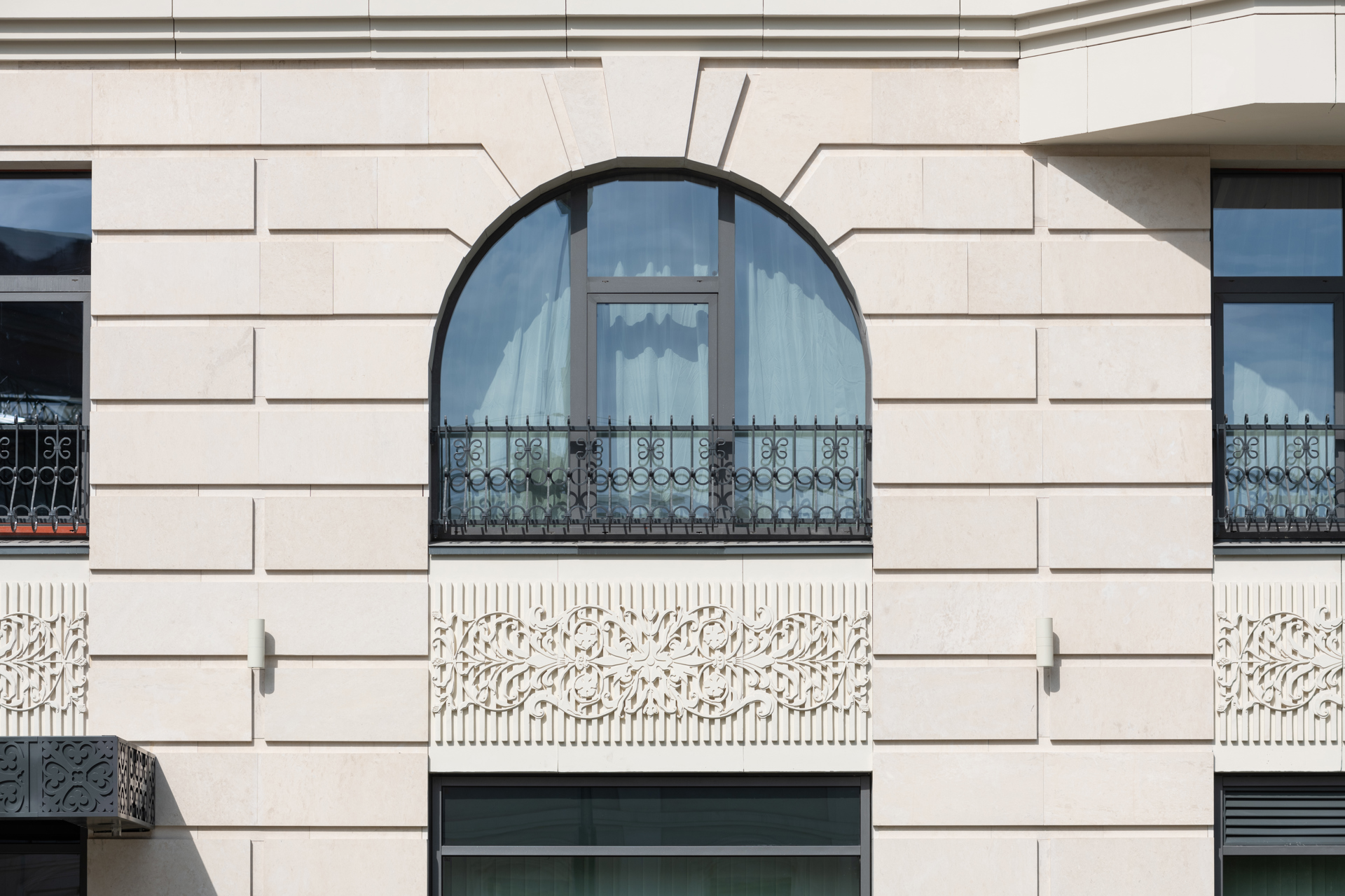 Облицовочный материал: натуральный камень, бетонная плитка White Hills, стеклофибробетон